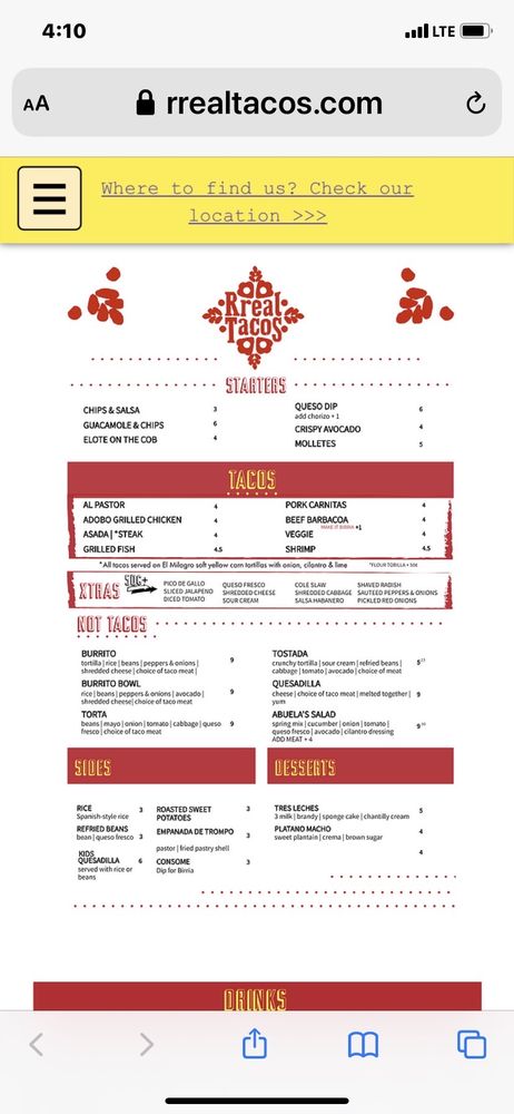 Welcome to Rreal Tacos - Midtown, the go-to spot for the best tacos in Atlanta! Located at 100 6th St NE Ste 110, this restaurant offers a wide range of delicious options, including Al Pastor, Grilled Chicken Adobo, Asada, Grilled Fish, Pork Carnitas, Shrimp, Beef Barbacoa, and Veggie tacos. Their starters like Chips & Salsa, Guac & Chips, and Elote will leave you craving for more. Don't miss out on their signature dishes like TORTA, Burrito, Burrito Bowl, and Tostada. The reviews from satisfied customers speak for themselves, praising the flavorful and well-seasoned tacos. The service is top-notch, and the atmosphere is inviting. Whether you're dining in or taking food to go, Rreal Tacos - Midtown is a must-visit for all taco lovers!